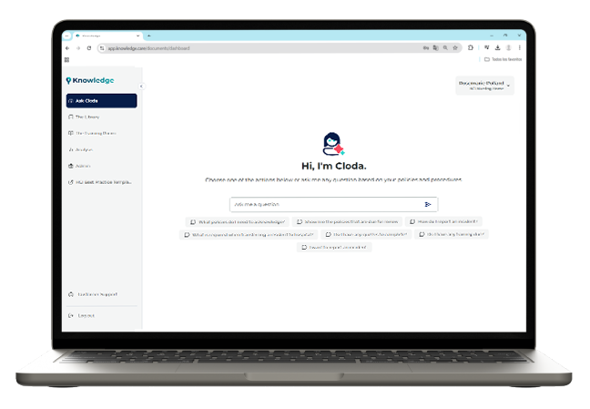 Cloda is the digital assistant, available in your pocket to provide the answers you need from your policies and procedures, in your language. Just ask Cloda.